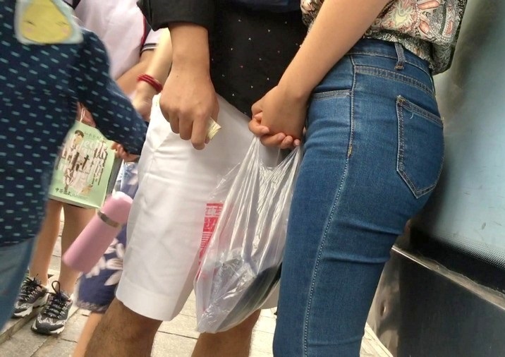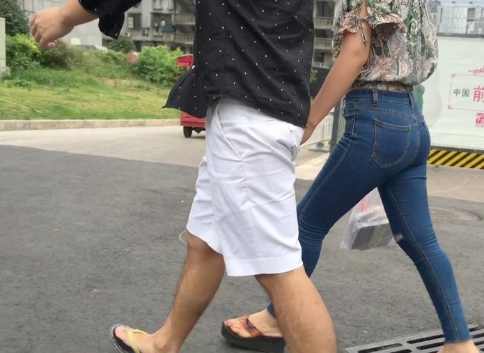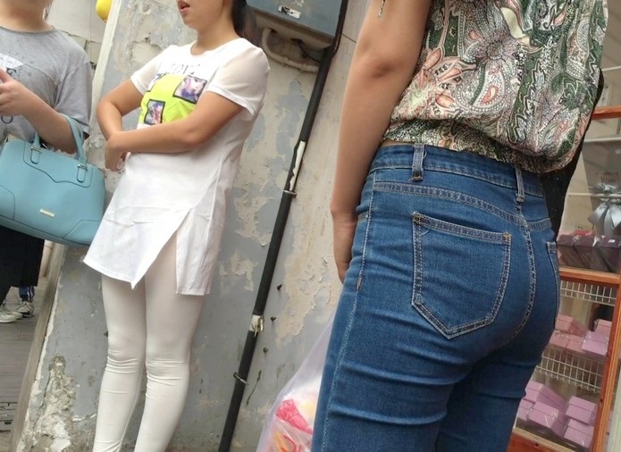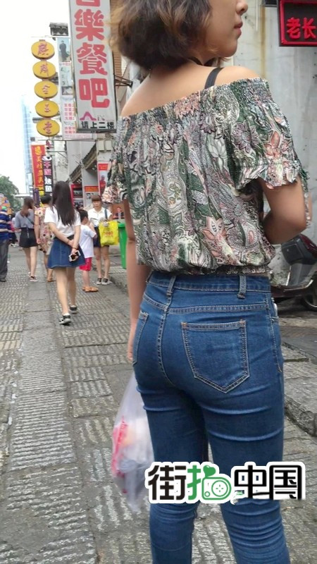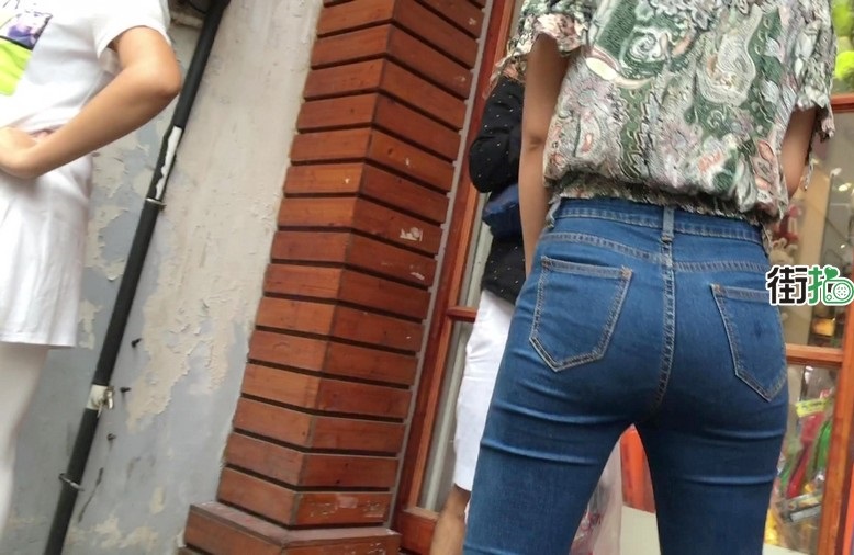 【编号1161】街拍紧身牛仔裤MM被男友摸屁股
