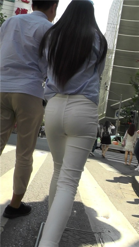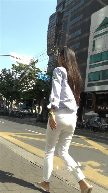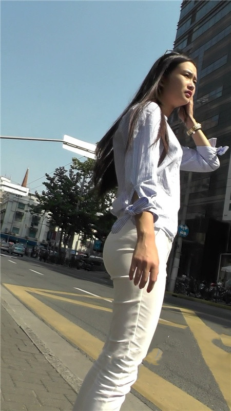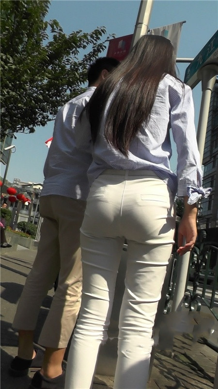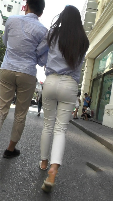【编号1200】街拍白色紧身裤长腿MM
