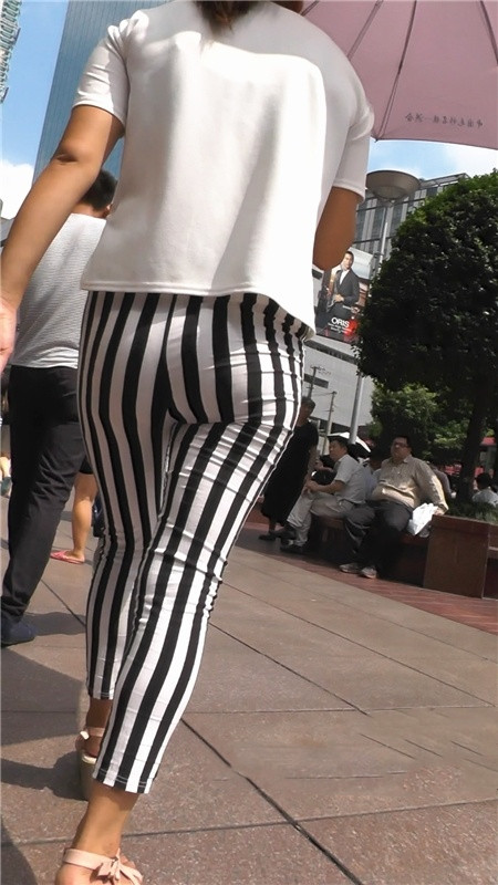 【编号1205】街拍斑马条纹紧身裤人妻一扭一扭