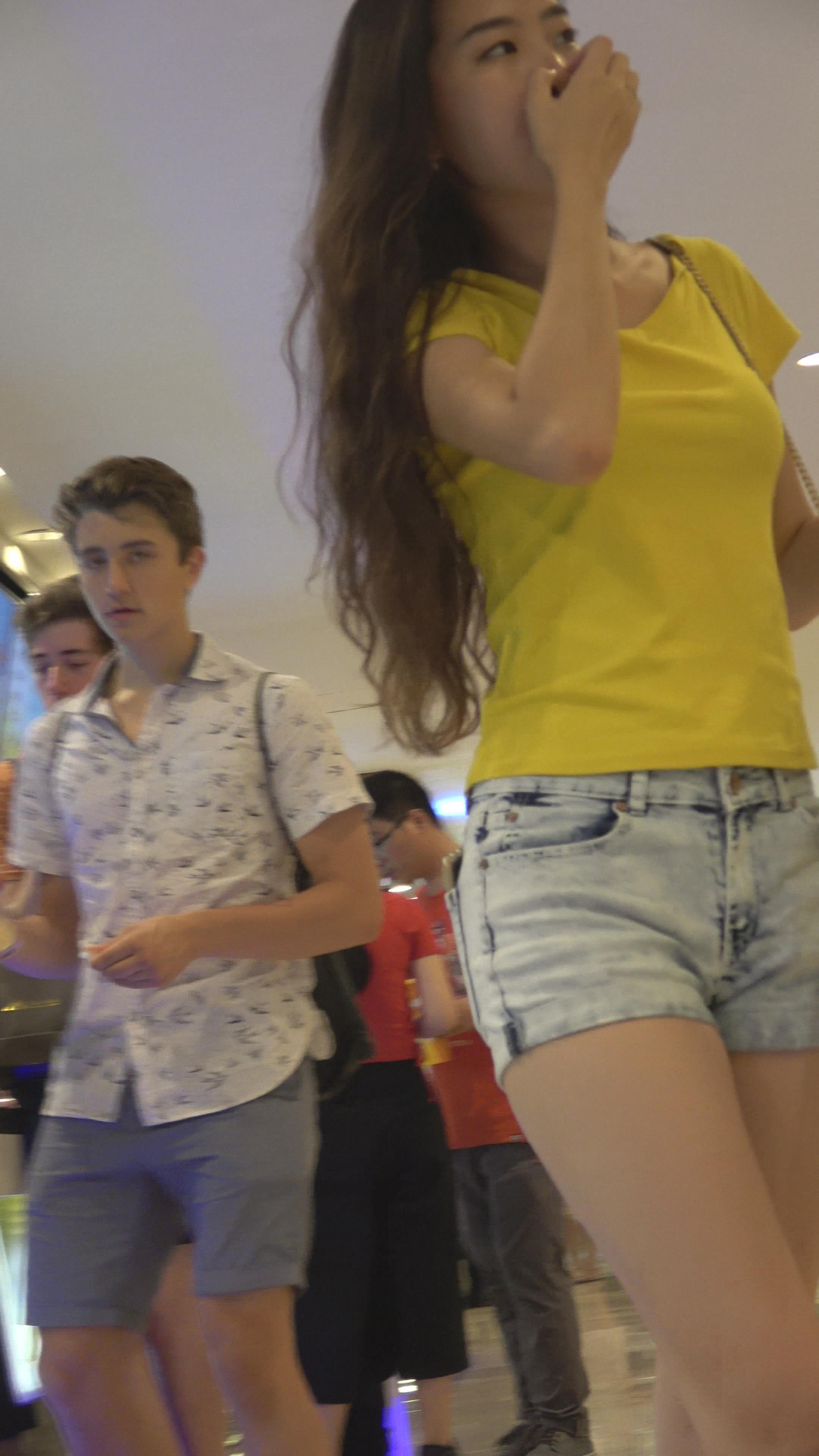 4K 黄色T恤街拍牛仔热裤小姐姐 编号3114