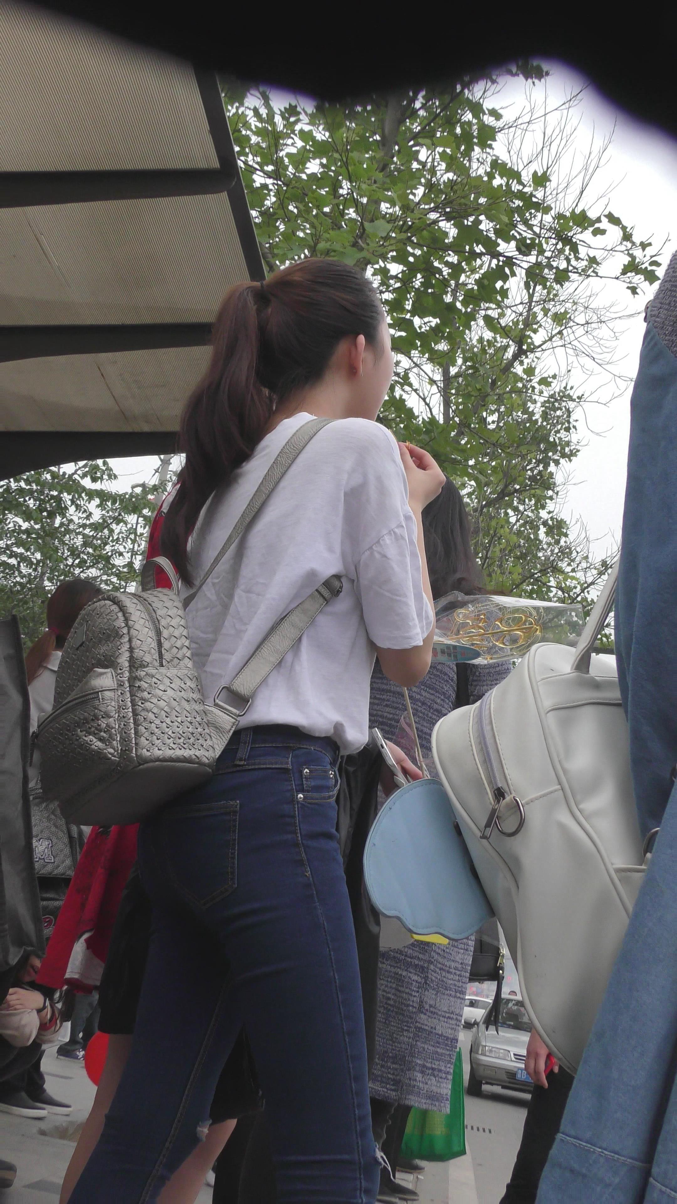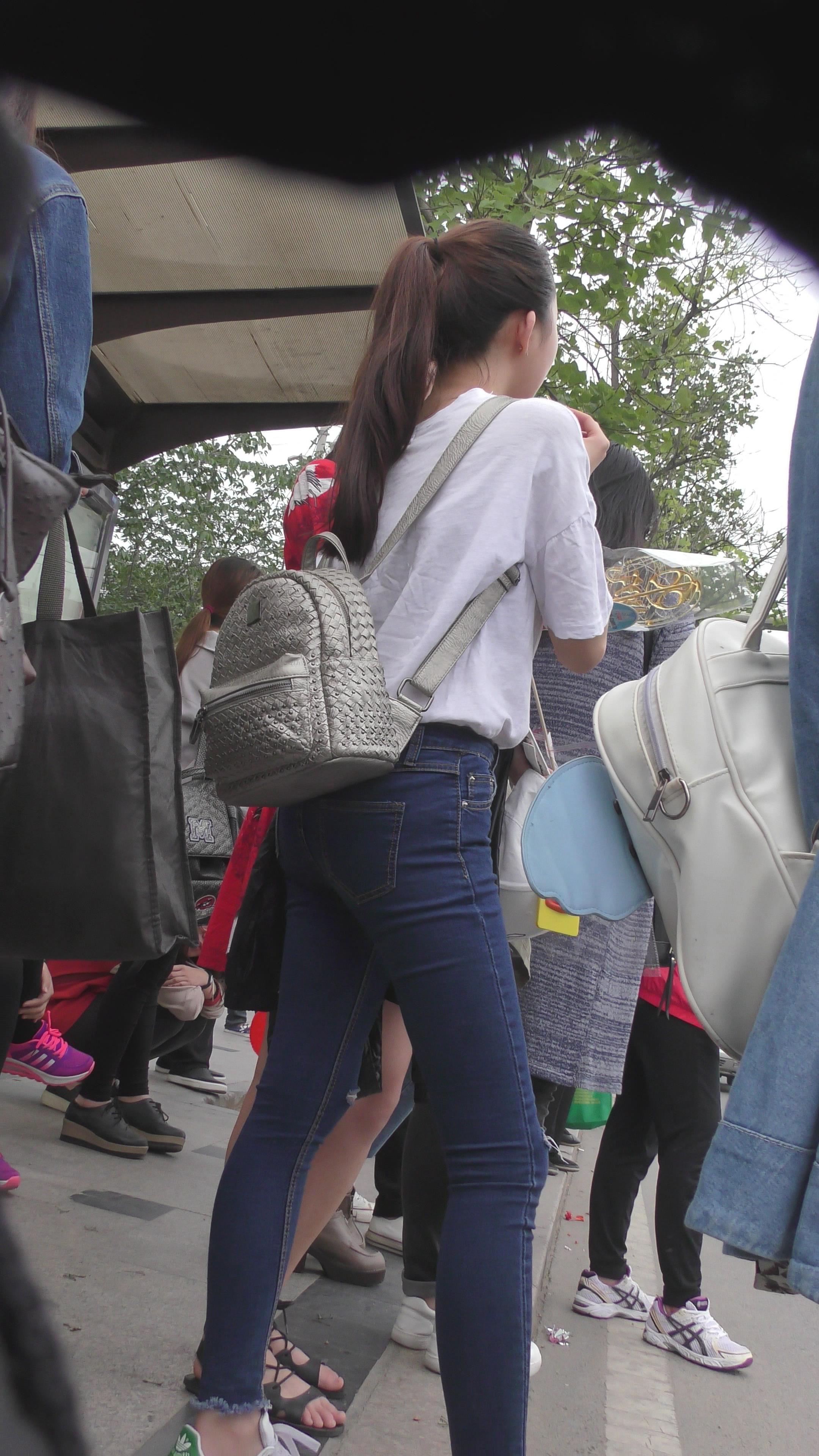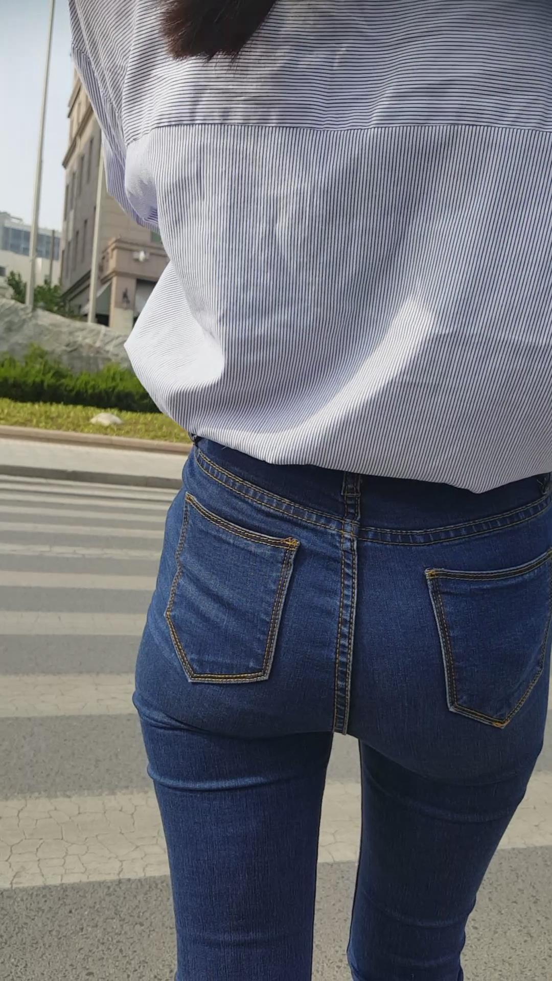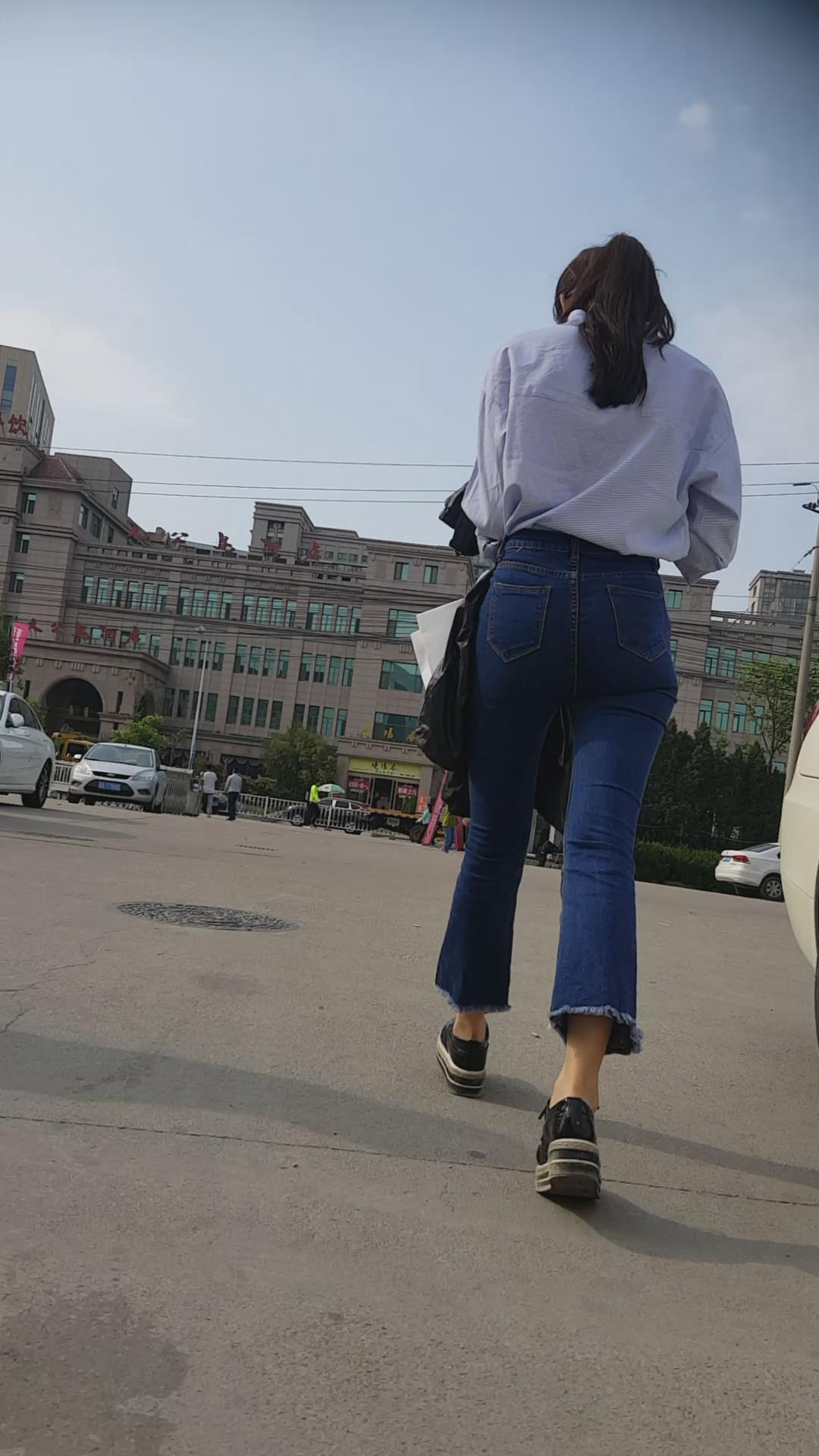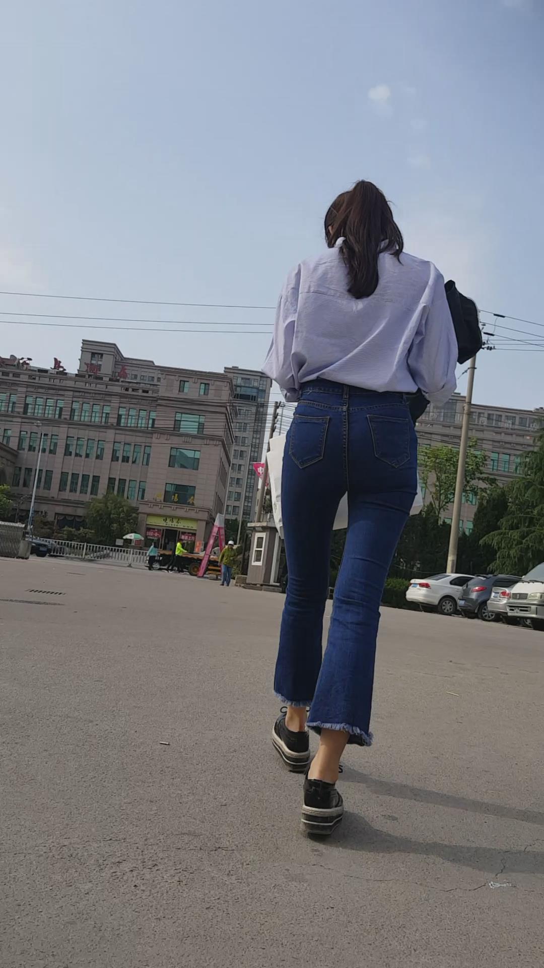 4k-紧身蓝牛清秀高颜值街拍美女 编号3118